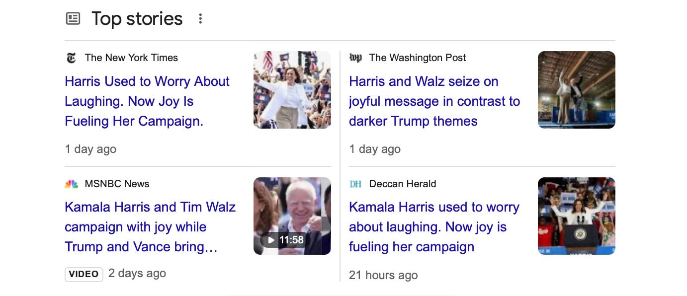 Imagine how the Bidens must be feeling right about now. Are they feeling any joy™? Do they like it that George Clooney and Reid Hoffman pushed him out and selected Kamala Harris? Do you think they’re feeling joy™, watching the mania play out with happy smiles, laughter, and awkward dancing from Tim Walz? Yay we got rid of Joe, aren’t we happy?