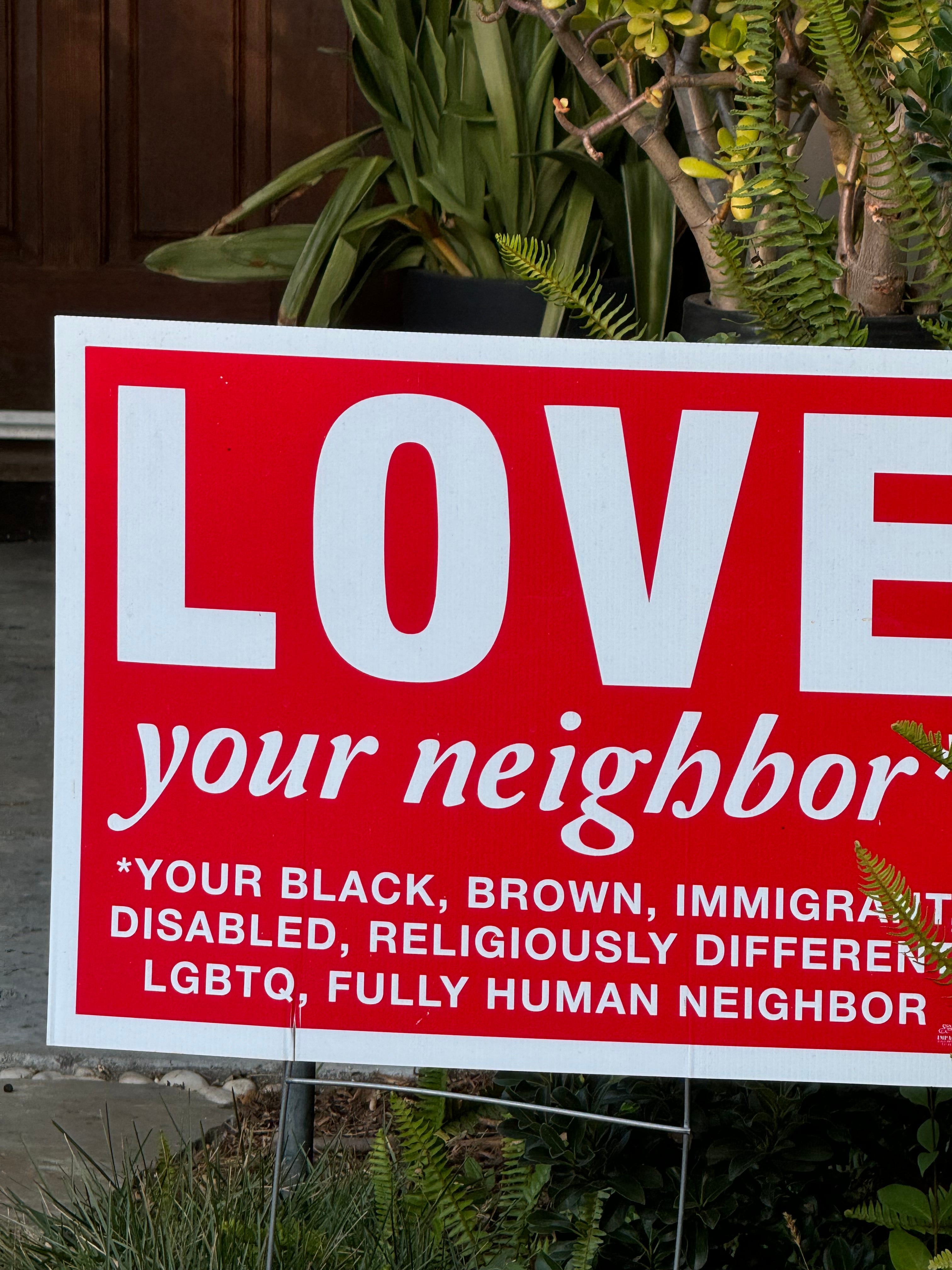 I walk my dogs around my town twice a day. I’ve always known it was a 96% white and 99% liberal town. It’s the kind of California town with yoga studios and health food stores. The rules are very strict. My brother, who is building a house here, had to go to court three times to fight for a gas stove in his new house. It’s the kind of place that has those lawn signs, you know: