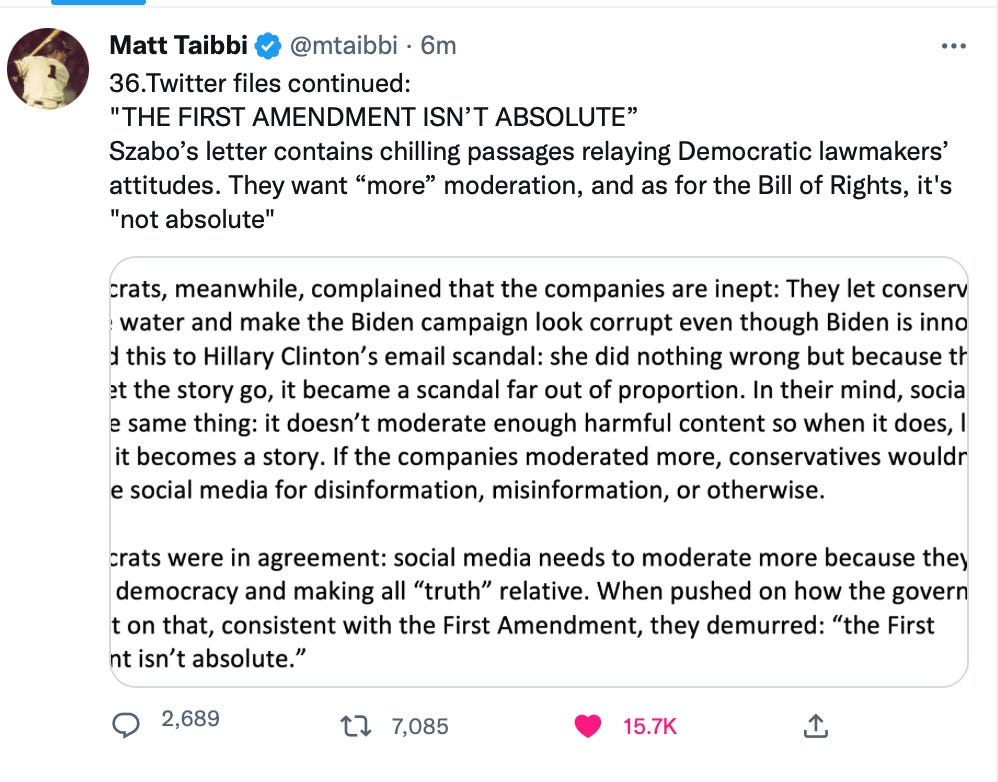 There will certainly be a backlash against Taibbi (it’s already happening) but Musk couldn’t have chosen a better journalist to write this story. He is a truth teller.