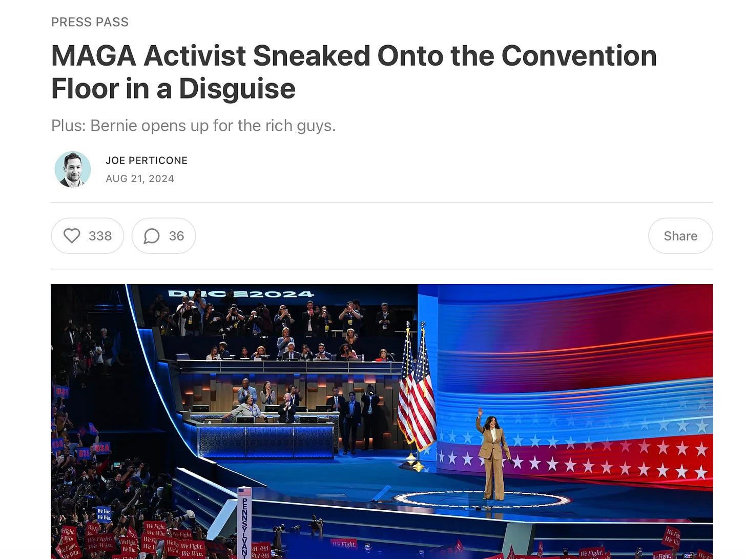 Over the past few days, photos of Matt Walsh in disguise at the Democratic National Convention have popped up on X. Everyone wondered if that was him. The Never Trump bores at the Bulwark wrote a typically embarrassing column trying to explain a joke. Jokes don’t need any explanation. If you try to dissect them, you sound like an idiot.