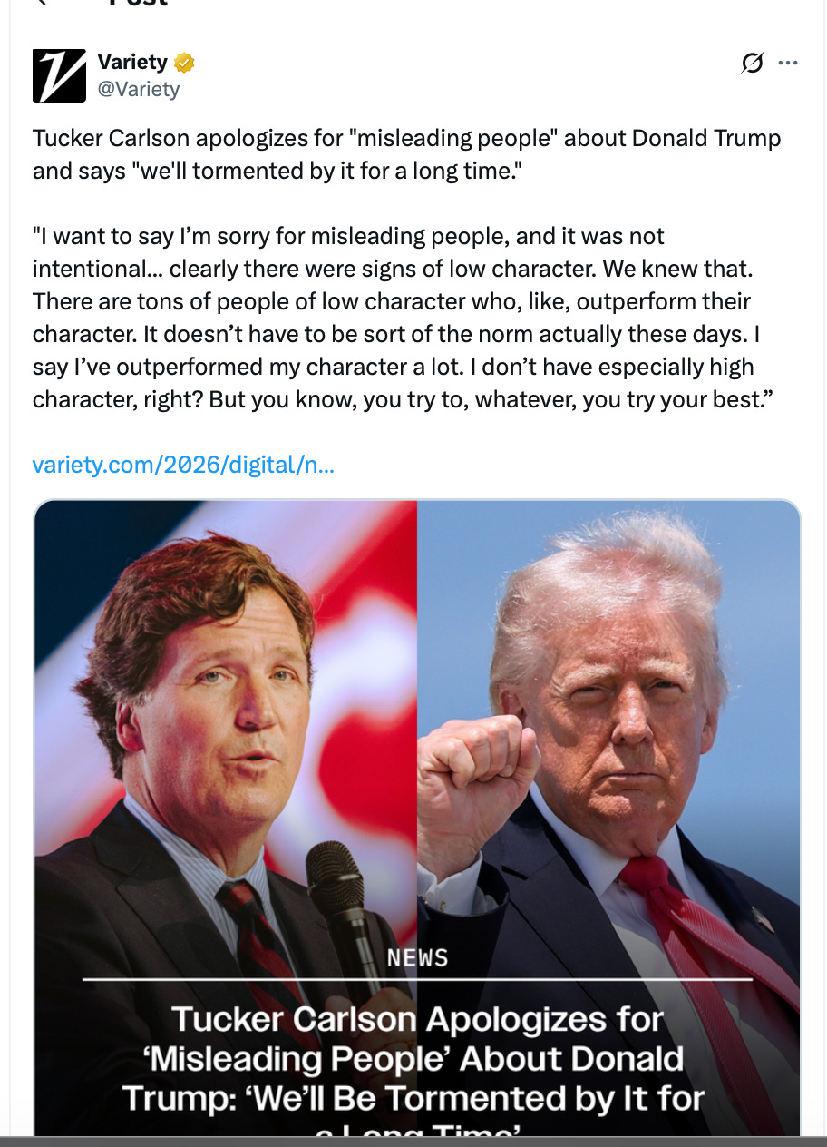 Tucker has turned into a rage-baiter (it seems). I used to listen to him only when the world freaked out about whatever his guest said, then I wanted to know what taboo truth was being aired. Now I’m just done with most all podcaster's. Most of them are not good for one’s mental health.