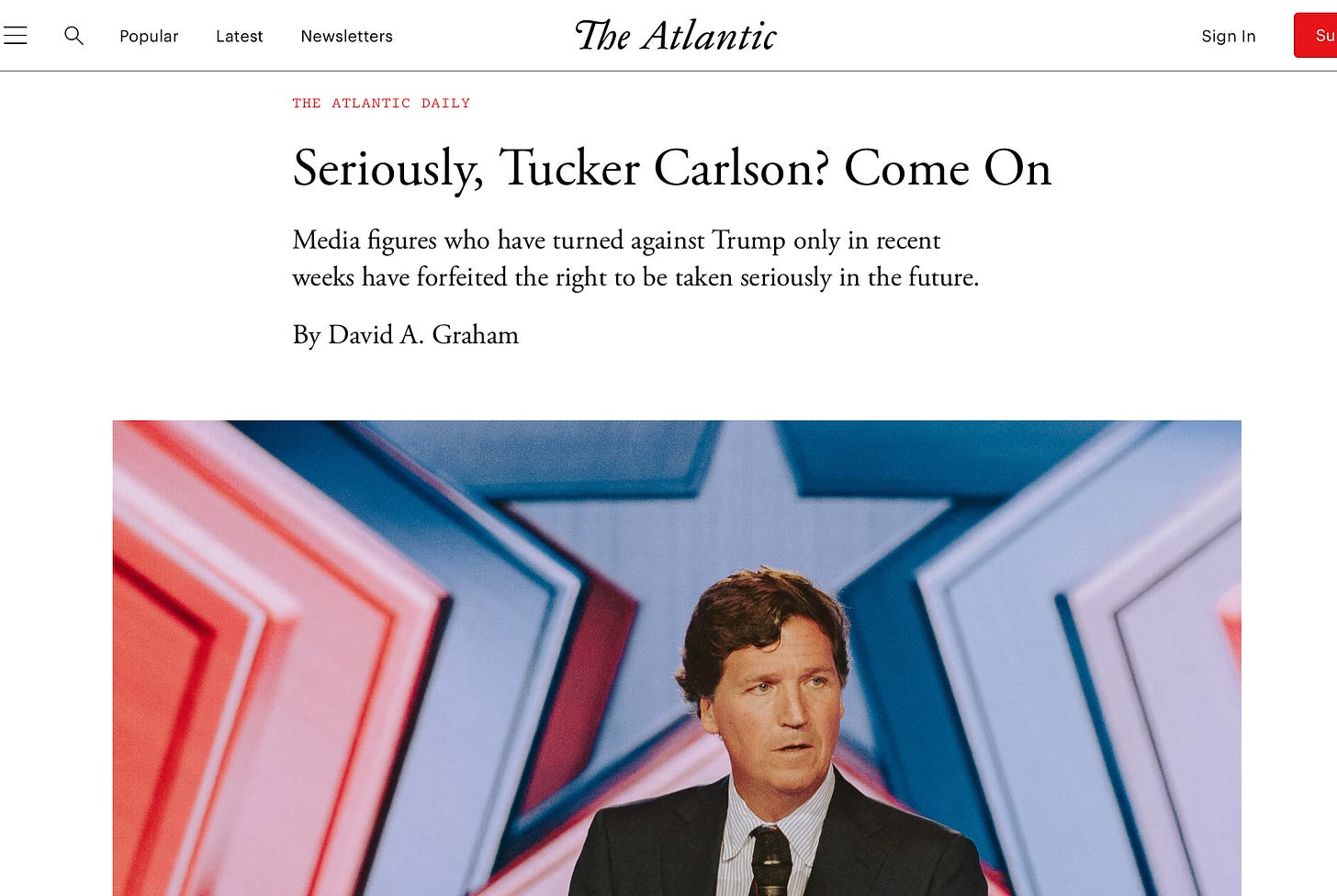 The Left has decided to glom onto this narrative and pretend like, suddenly, Carlson and others are “waking up” to how bad Trump is. As in: