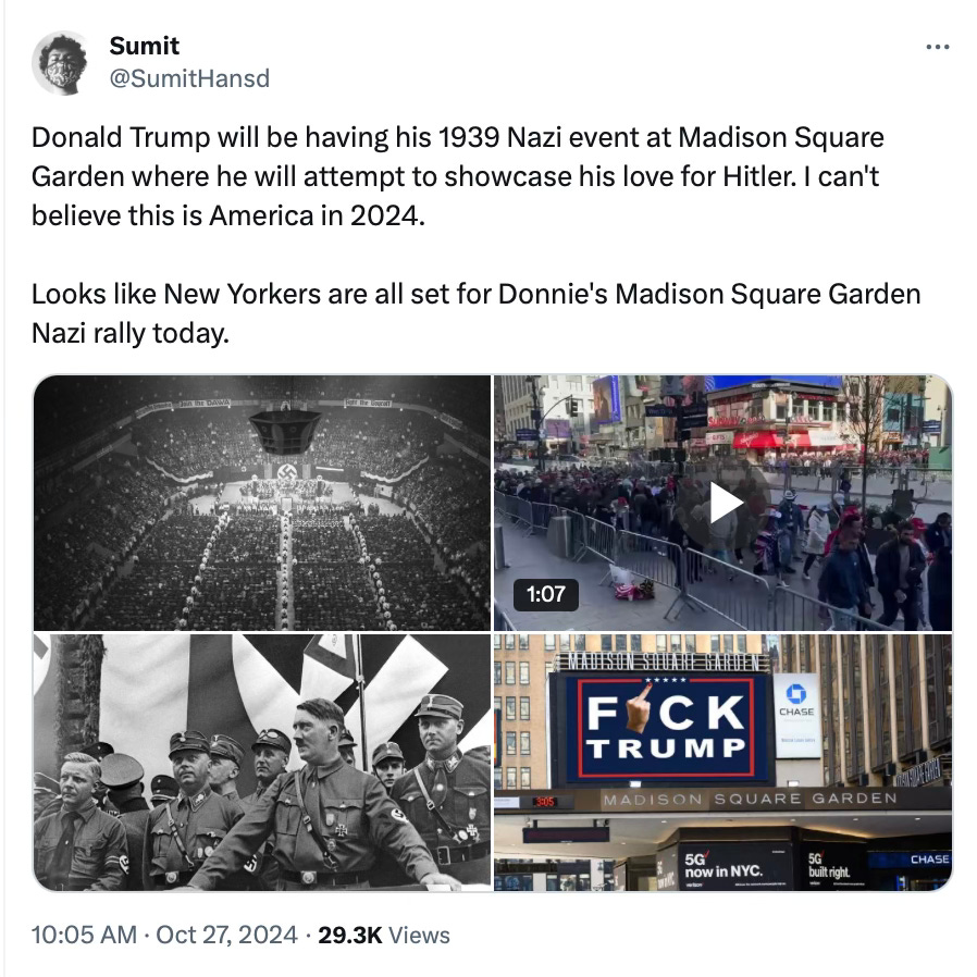 How dare they gather, Hitler-like, at Madison Square Garden to worship at the altar of the fuhrer himself, Donald Trump. That’s what the New Yorker says, what the New York Times says, and what John Cusack says.