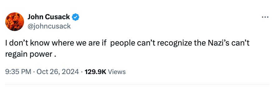We were all so in love with him. Every boyfriend we ever had was John Cusack in one form or another. But that was then. Things have changed now that fascism has arrived in America.