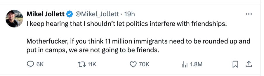 Power to the state against the individual is how you stop fascism now. Because if free people choose the guy who says he’s going to fix the border problem and yes, that might include some deportations — that means we are no longer able to staff our labor force and grow a stronger coalition in the swing states.