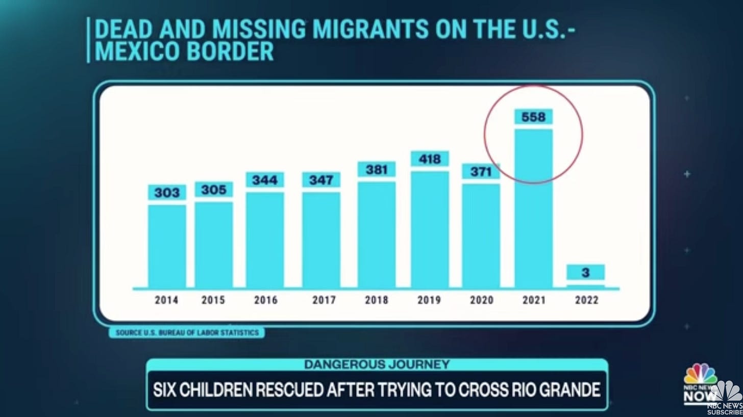 More crossings, more deaths. You’d think that alone might have waken up the Biden Democrats to try to do something, especially since most of them believed that it was Biden who invited them to come, his humanitarian approach meant if they showed up they would be welcomed in.