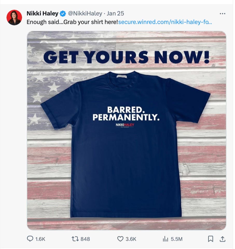In an awkward counterplay, Haley attempted to turn it into Merch, bringing back how the Democrats used “Nevertheless, she persisted” and “Nasty Woman,” etc.