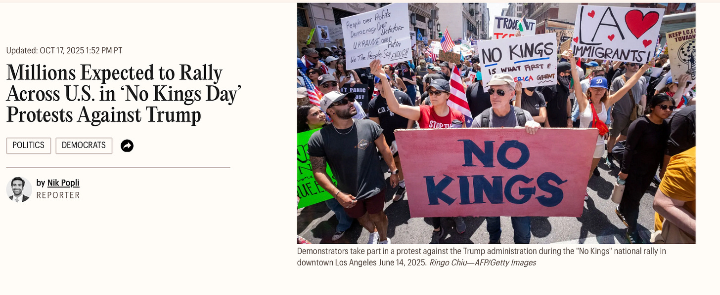 What are their No Kings protests anyway? What have they been since 2016? What are they trying to say? Is it like the ex who smashes all the dishes in the kitchen when her husband tries to leave? I won’t be ignored, DONALD.