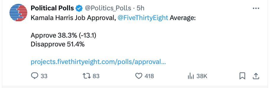 Trump still leads in the polls, though not by as much as he did against Joe Biden. The system the Democrats have built is mighty, without a doubt. But Trump has what they’ve never had: he can promise a brighter future. They can’t. All they can promise is more of the same, what we’ve seen for the past four years.