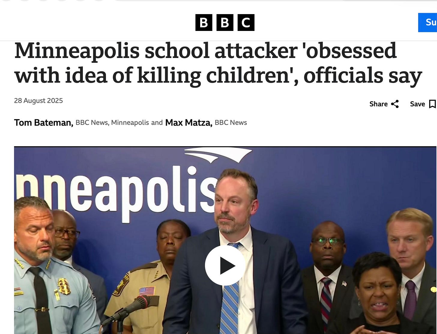 What we’re really talking about here is three transgender shooters who targeted children. Robin Westman himself was obsessed with them: