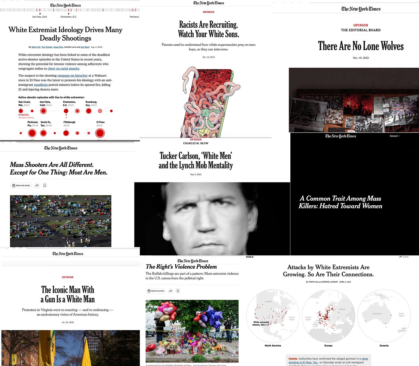 Look no further than the New York Times to see how they’ve decided that the only demographic to fear is white men.