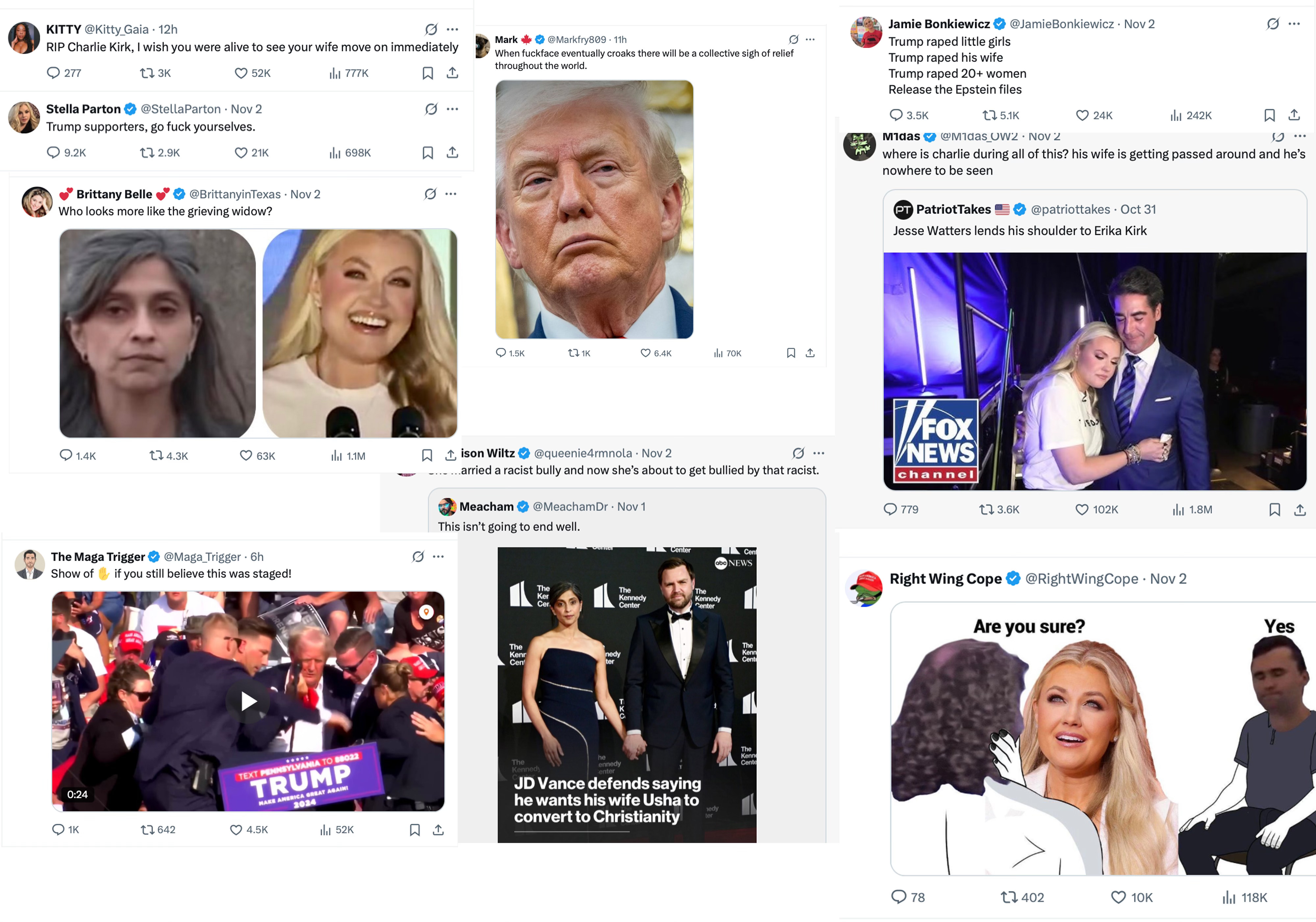 I watched them dig the knife in deeper on X and on TikTok. I watched them mock Erika Kirk. Then I watched Barack Obama and all of the celebrities call Charlie a racist when he wasn’t here to defend himself.