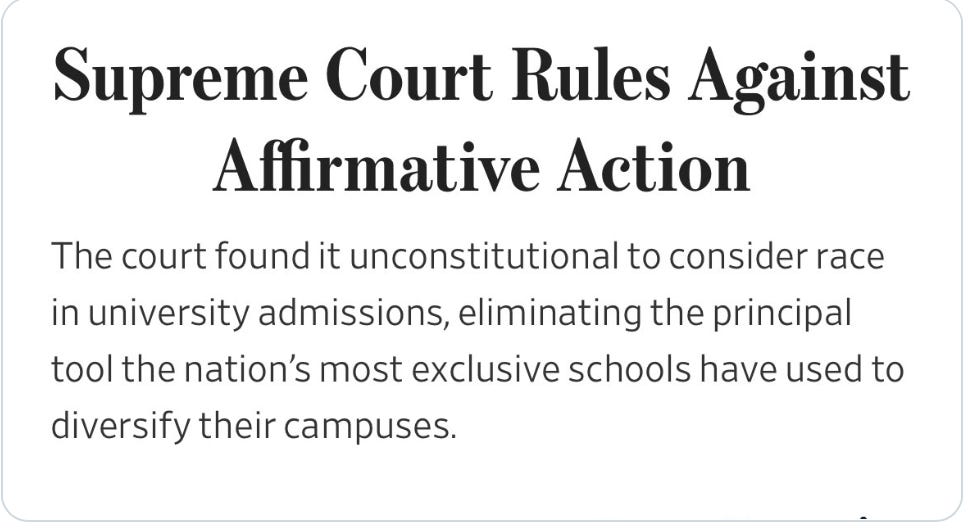 You’ve probably heard the news by now that the Supreme Court overturned Affirmative Action.