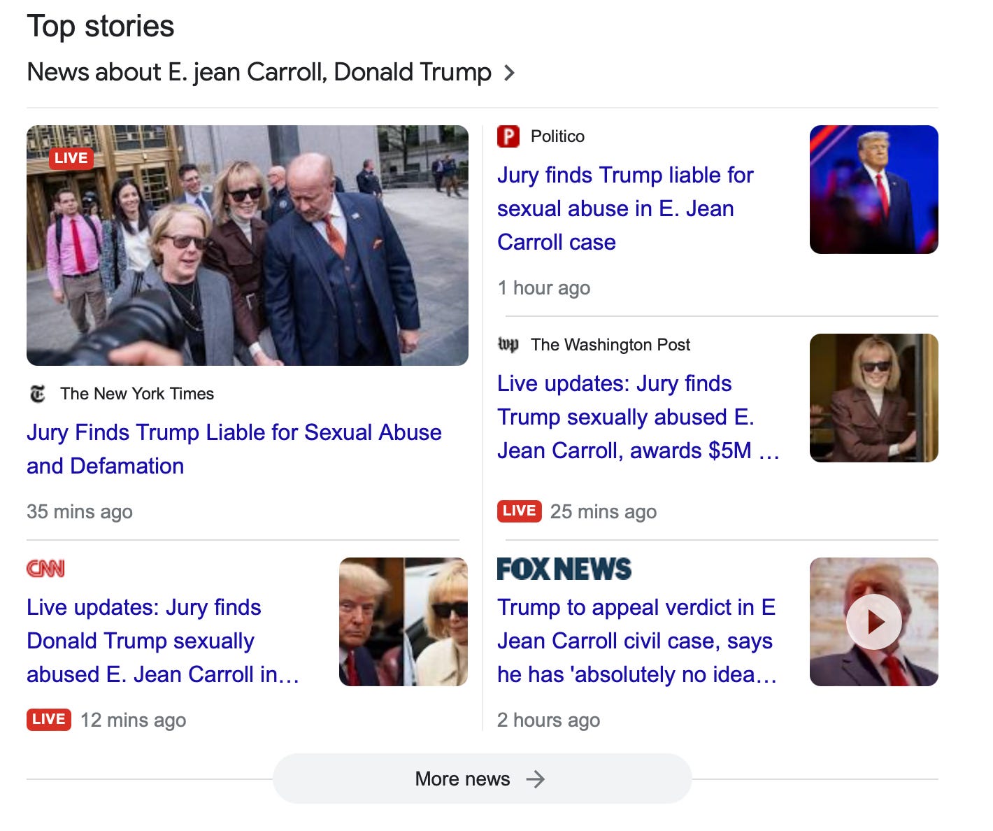 Finally, yes, I know the news about Trump being convicted of defamation against E. Jean Carroll. It is, to me, sadly, more proof of making our legal system a weapon of one political party with the money and the lawyers.