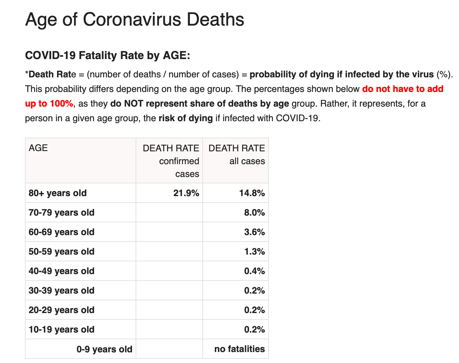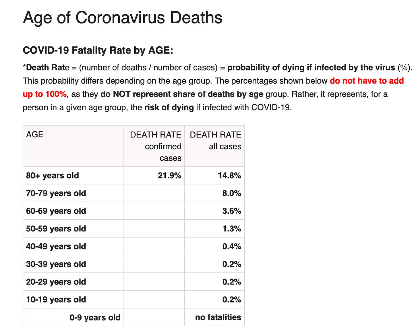 Both Trump and Biden are in the 8% category, bad but not as bad as being 80+. My chances of dying are just 1.3. My daughter’s are just .2%. By all means, let’s protect the elderly from this deadly disease but are these percentages really worth the level of panic CNN puts out? Is that even news anymore or a way of controlling people using fear?