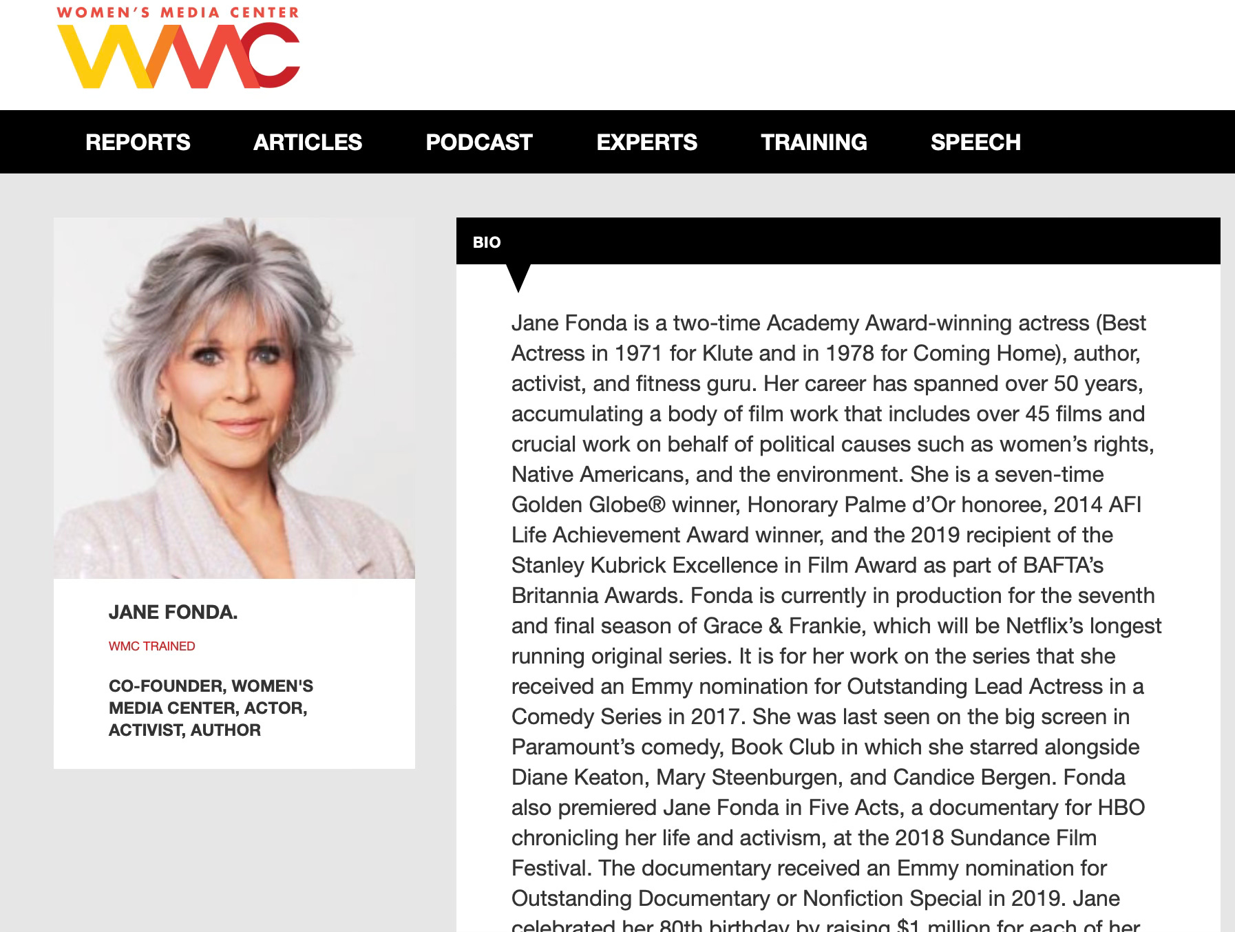 She might talk a good game, but the pro-woman group she co-founded, Women’s Media Center, dropped me like a bad habit this year to write their annual report on the Oscars and gender, which I’d been writing for nearly a decade. I was good at it. I knew a lot about it, yet one story about me in the Hollywood Reporter was all it took for Jane’s women’s group to punish this woman for thought crimes.