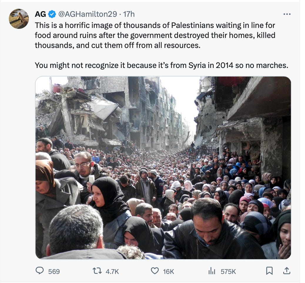 The reason I don’t defend Palestine or Hamas or offer up the other side of the issue - I recommend Glenn Greenwald for that — is not because I am a “Zionist” but because I give Israel the benefit of the doubt that they are fighting a just war for their very survival and that there are going to be casualties of that war. What happened to them on October 7th requires that response.