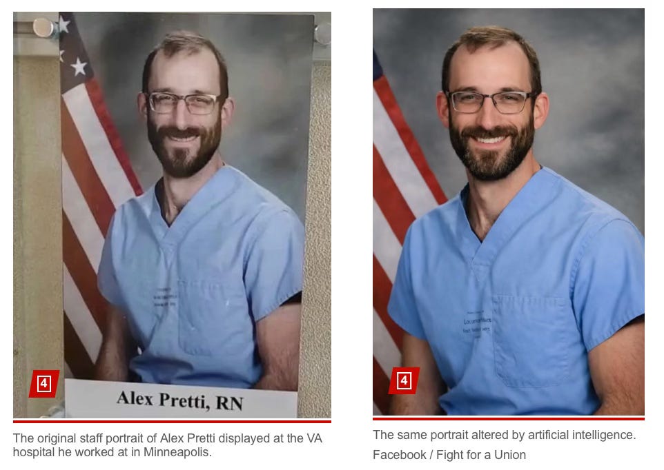 And if all of that wasn’t enough, there was an AI-generated picture of Pretti looking more “pretty,” that circulated and was seen on some major news outlets.