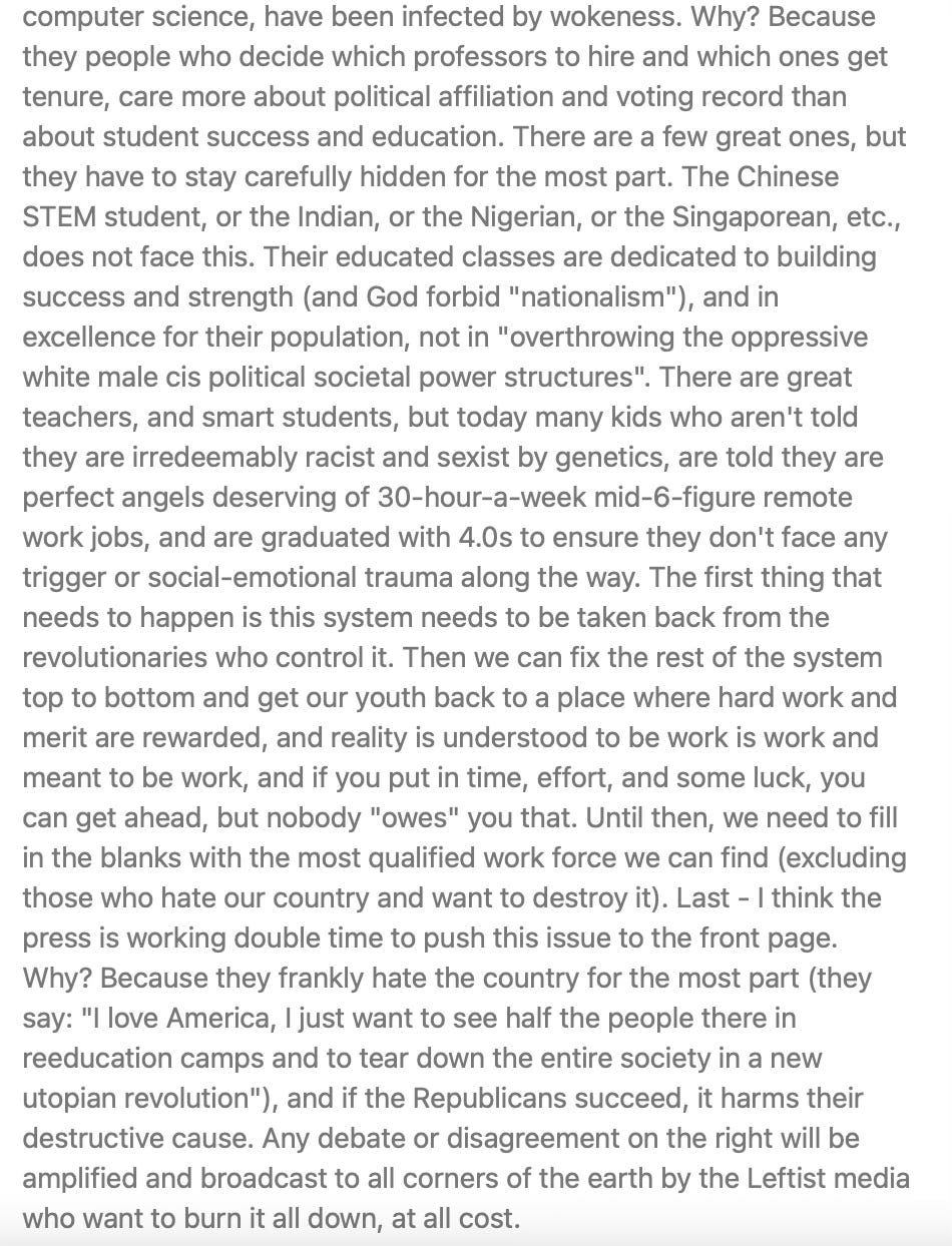Much of it is probably just a lazy shortcut for them to move fast and break things. Hire cheap, smart labor that won’t complain. It’s kind of like companies that won’t give their employees full-time so as not to pay for healthcare. Ungar-Sargon and others would be complaining about that, for instance, or the minimum wage, traditionally Democrat positions, but they have billionaires to go after and that’s much easier but it’s really the same argument. Pro-business vs. pro-worker.