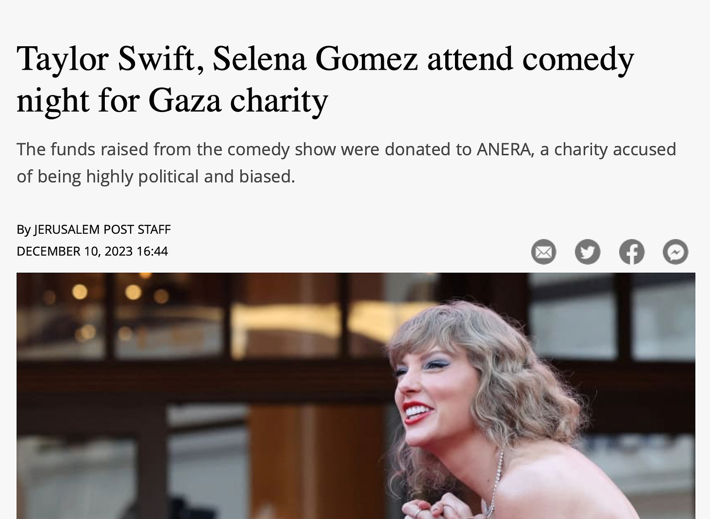 ”Despite pressure from activists, Taylor has stayed out of it but she did spend time with Selena Gomez and they went to a fundraiser for Gaza. Palestine. She hopes that would keep things somewhat tamped down. Did you see this video?”