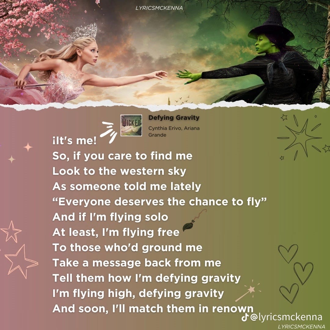 I watched Wicked with my daughter, and at the moment Elphaba becomes a witch and takes to the sky for the first time, we hear this wonderful part of the song—that was when I realized that in a world of Glindas, it’s more important to be an Elphaba.