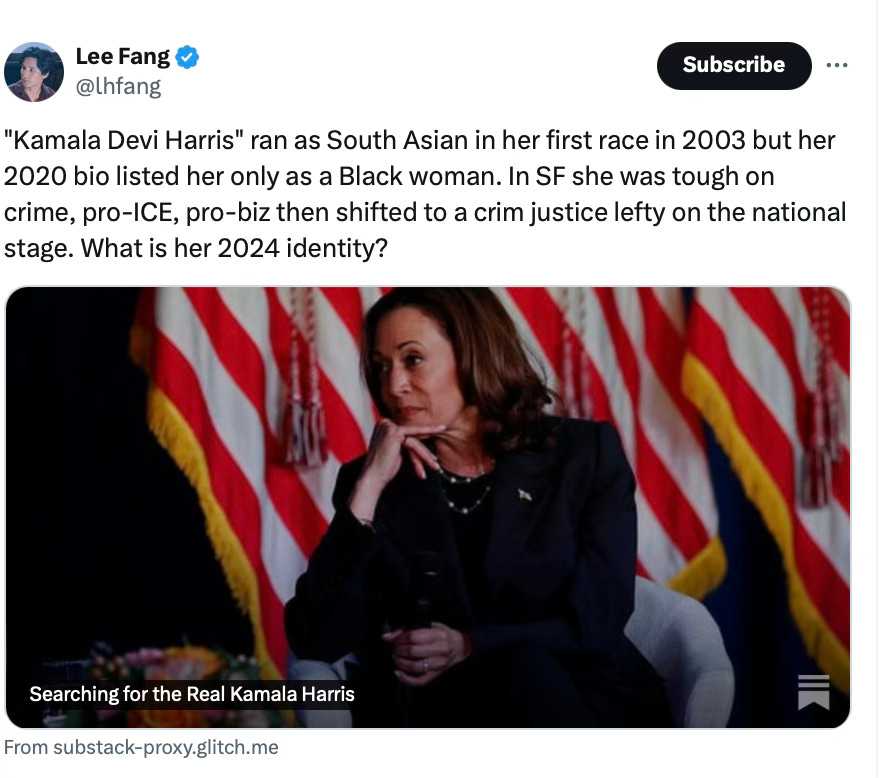 But who is Kamala Harris really? Is she a shapeshifter who will play any part that’s required of her? What does she stand for? No one will ever ask because it doesn’t matter. Like the diverse characters in Twisters, the only thing that matters about her is that she’s Black and female.