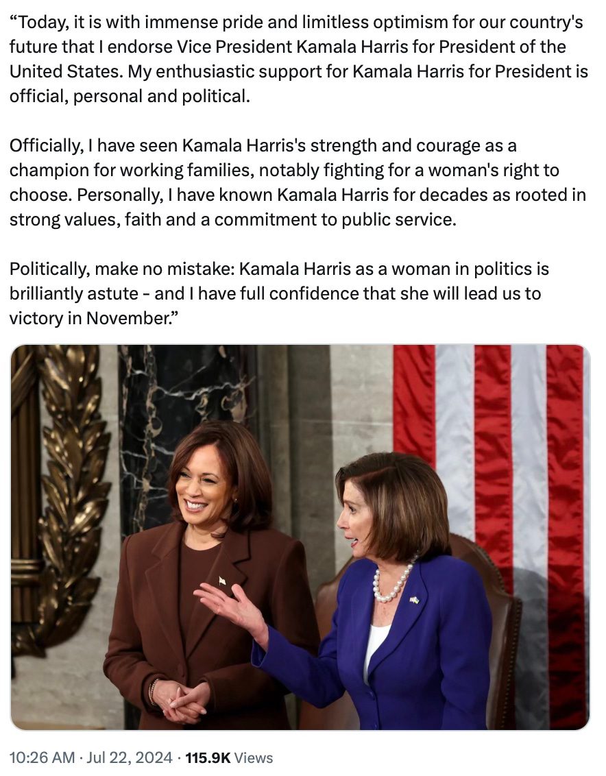 None of them would have said a thing if Biden’s poll numbers hadn’t dropped. Not George Clooney, not Nancy Pelosi, not Barack Obama. They would have kept the grand illusion going, knowing that Harris was always the final endpoint.