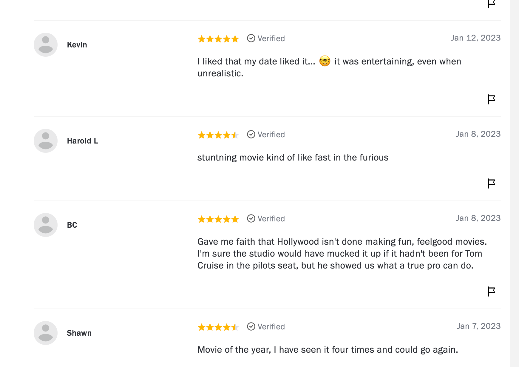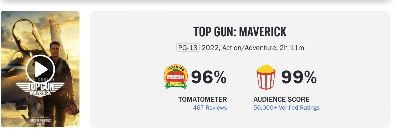 Top Gun Maverick’s audience rating is astonishing. Most films don’t get anywhere near that number.