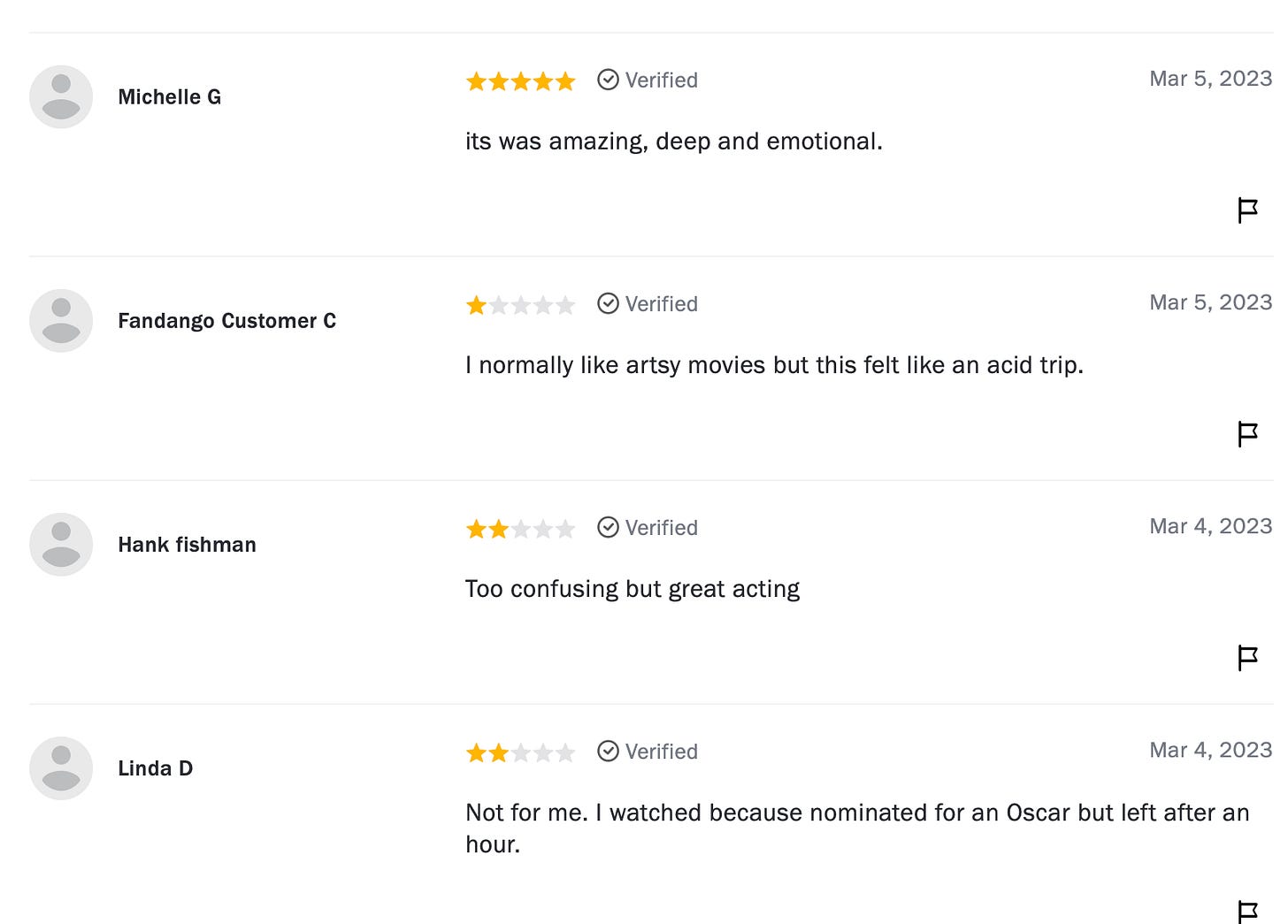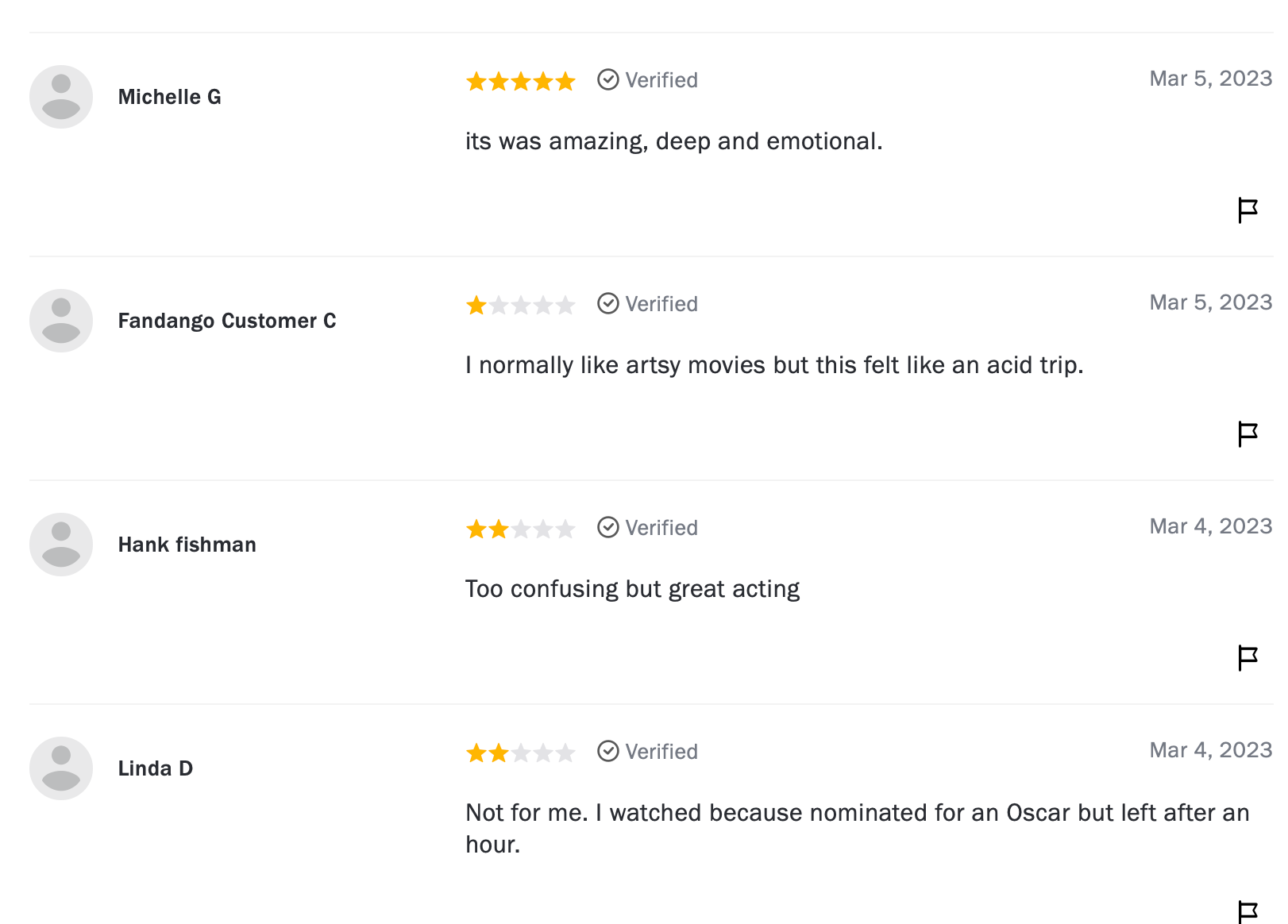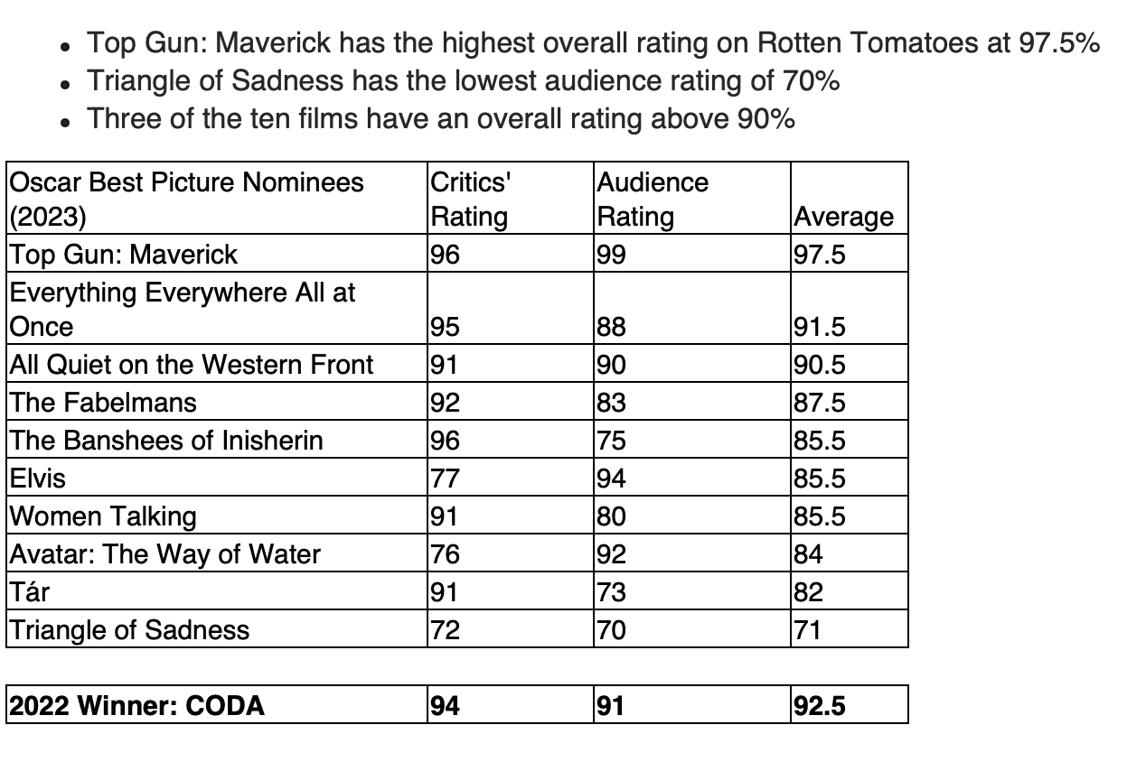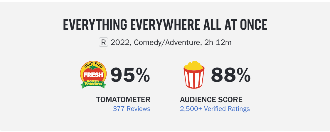 Meanwhile, the movie that will win, Everything Everywhere All At Once has an audience score of 88%, which is still good, but it ain’t 99%.