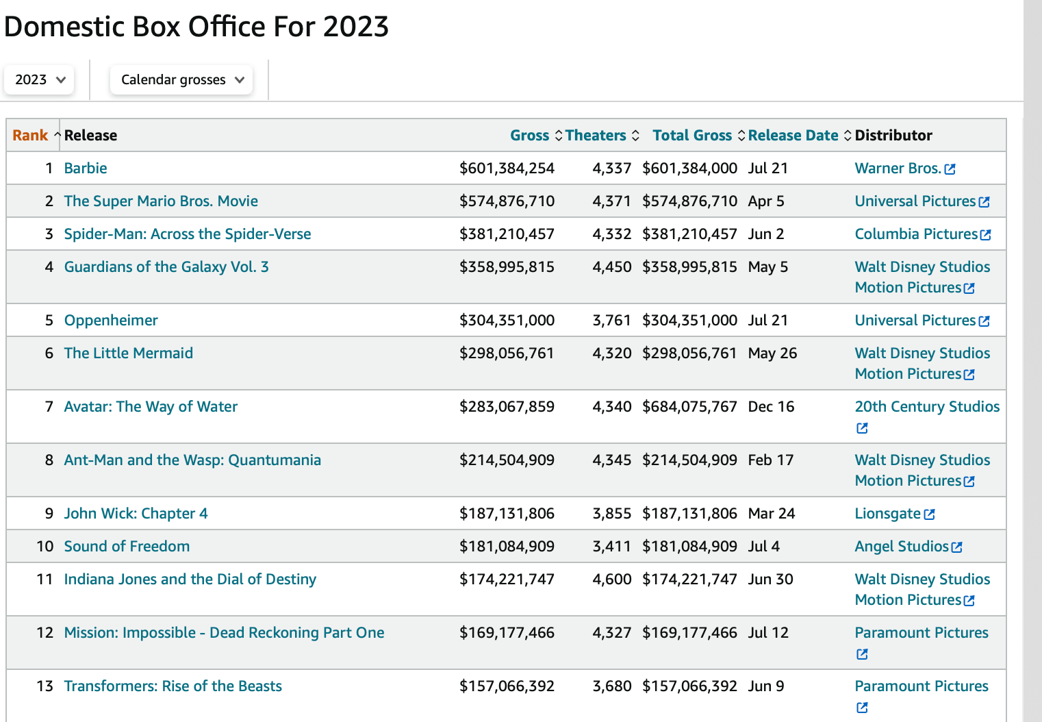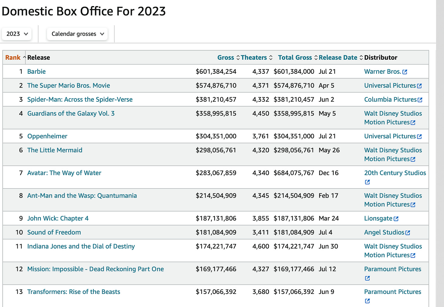 How shocking it must be that Sound of Freedom now tops Indiana Jones and the Dial of Destiny and Mission Impossible: Dead Reckoning on the annual box office chart: