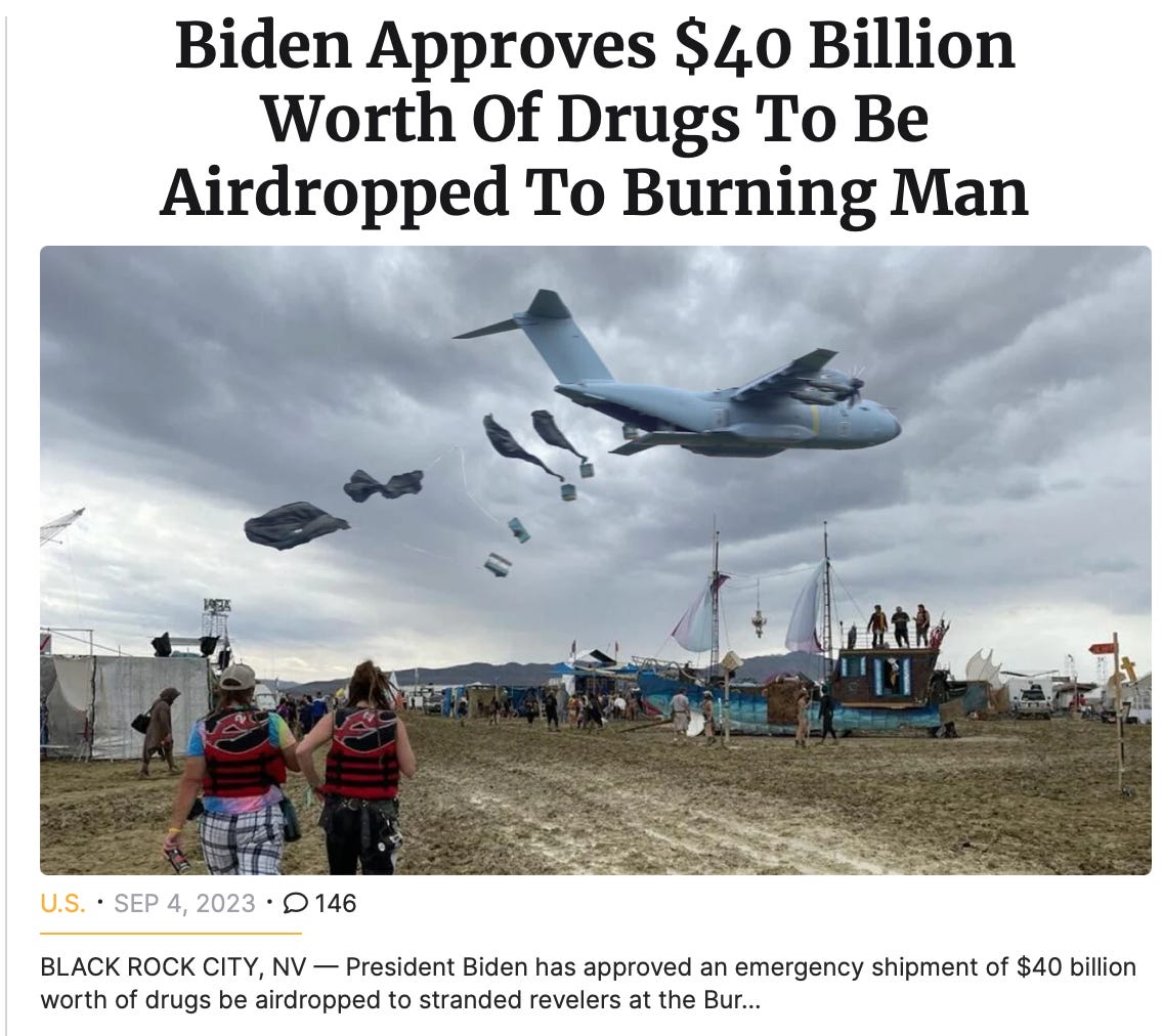 And speaking of Burning Man, it might be a metaphor for what’s about to happen to the Left. No matter how much they wanted things to be the same as they always were, how much they wanted to celebrate in their utopian oasis, to dance in the moonlight in the desert, they were hit with a hard rain no one saw coming. The mud was too thick. Their RVs were stuck. Thousands had to walk out to find food and water. Their illusion shattered.
