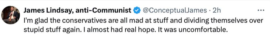 Unfortunately, we know the Republican Party, right? We know they can’t just take the W. They will mess it up somehow, as James Lindsay says: