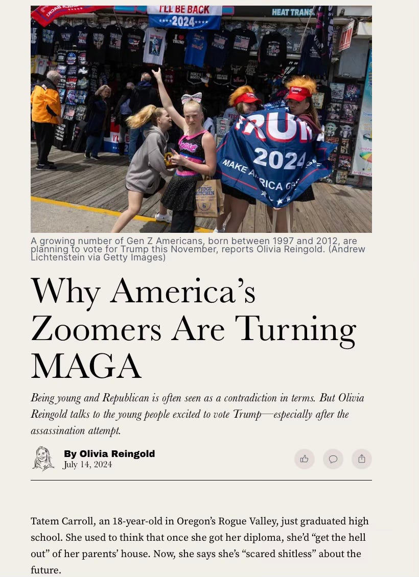 Why does she bring in voters? She, along with Trump, Elon Musk, and others, is helping bring back “cool” to the Republican Party. As NS Lyons wrote:
