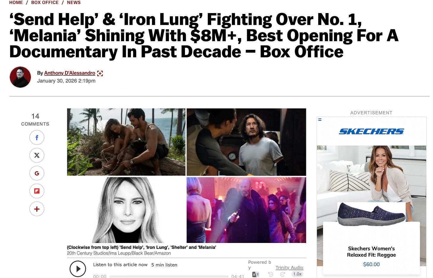 Melania is also tracking to be the best documentary opening in a decade: