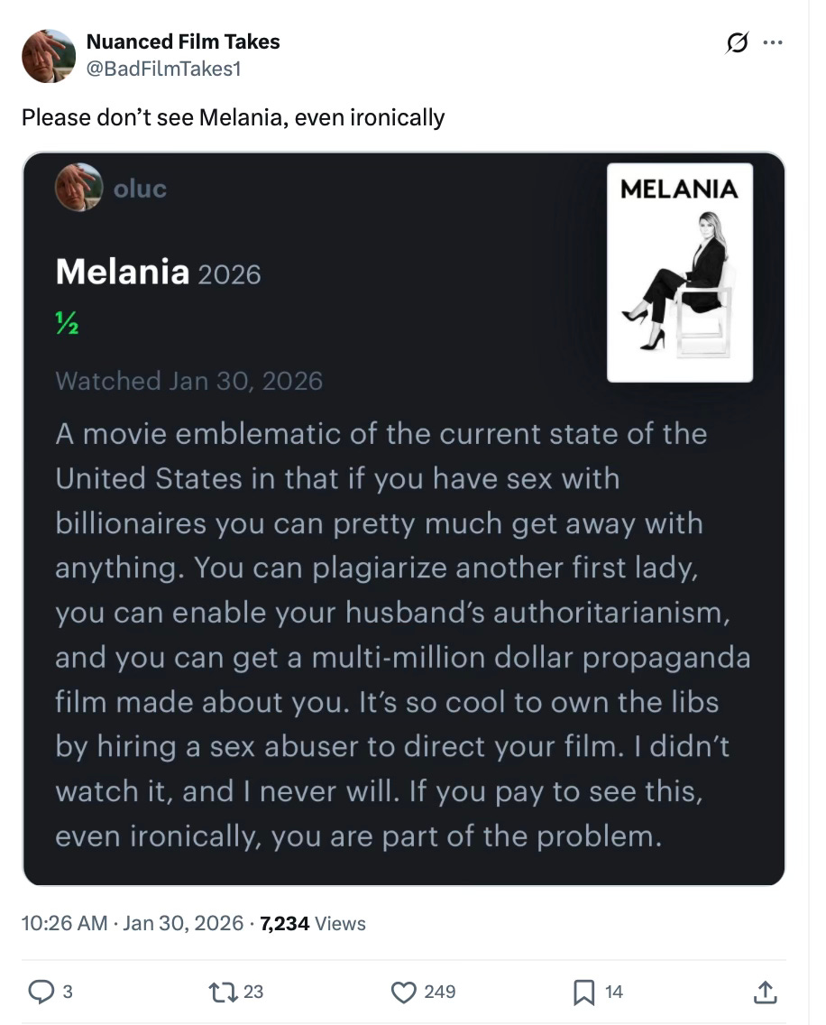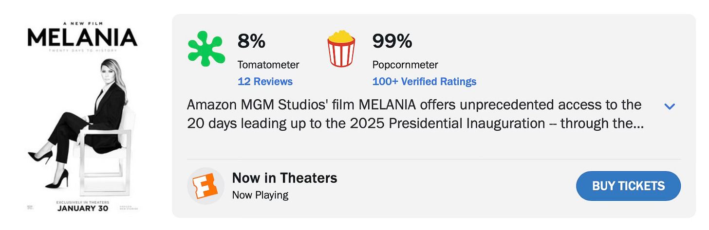 The Amazon documentary on Melania Trump hit theaters today. In case anyone is wondering why Trump won in 2024, this image should explain it: