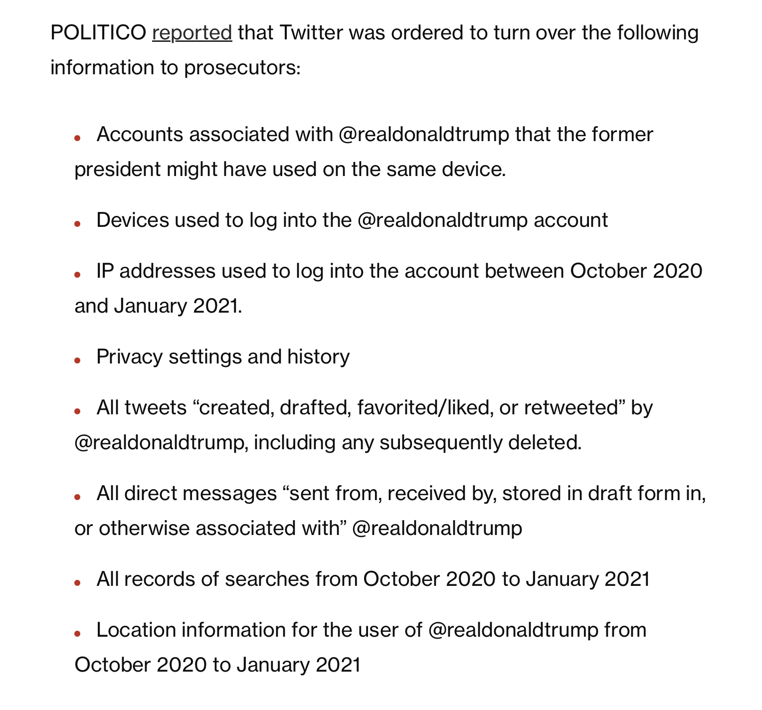 Trump has exposed just who and what our government actually is and how little power we have as citizens. If they can obtain a search warrant of a former President of the United States for drafts of Tweets, likes, and favorites, imagine what they can do to you.