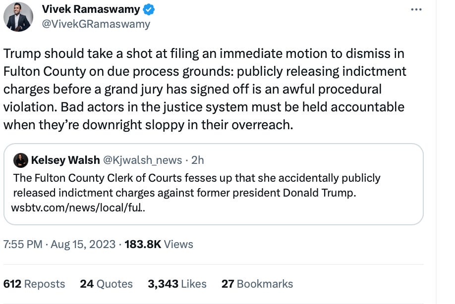 It’s all so clean. They’re riding the Trump wave as long as they can, milking it for all it’s worth. Here is Glenn Greenwald pointing out just how arrogant and hypocritical the charges against Trump in Georgia are: