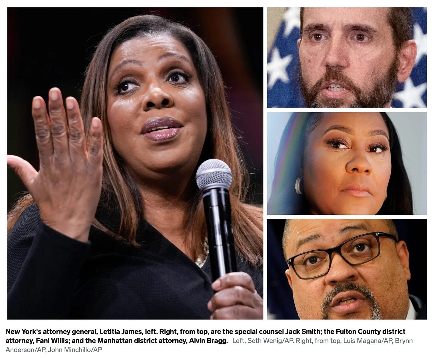 That Letisha James, Alvin Bragg, and Fani Willis are all Black prosecutors feeds the fanaticism of the white, ruling aristocracy and absolves them of their own white guilt - to them, this is the ultimate revenge for a “racist” like Trump. All the better to have the kind of optics worthy of a modern Hollywood courtroom drama.