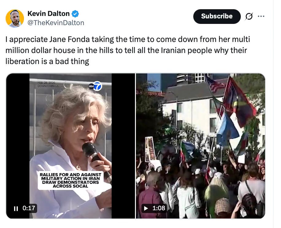 How stupid they look today. The world will have seen it too, and now they know what liars they are at the New York Times, the New Yorker, The Atlantic, and the BBC. They know Hollywood has lost its mind. They see Robert De Niro crying and Jane Fonda protesting — AGAIN — like a broken record. Who would want these people in charge?