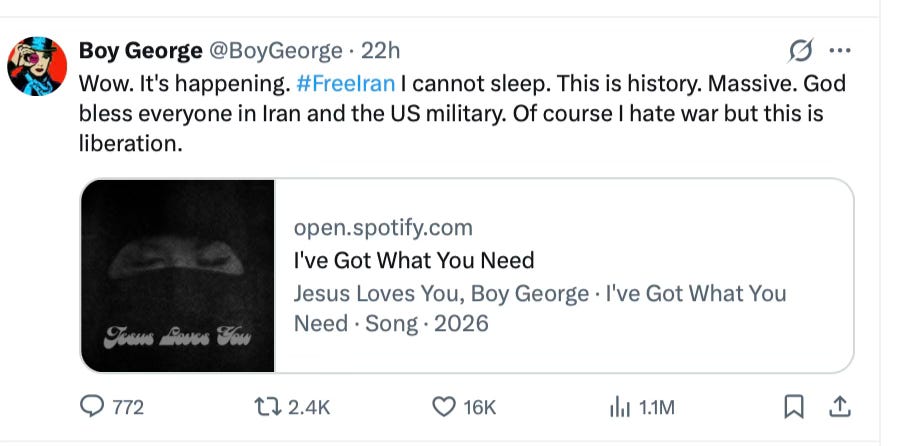 Even Boy George, who hates Trump, can’t help but praise the action:
