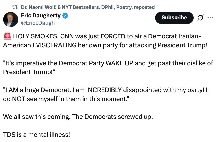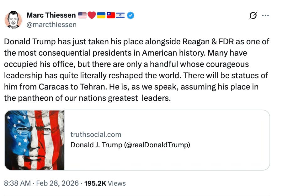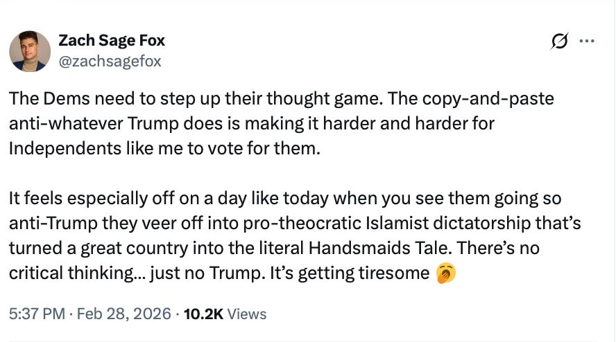 Many of them will finally see what I could see six years ago when I left the Democratic Party and escaped the Doomsday Cult. I always figured, or at least hoped, there would be moments of clarity where others could finally see what I see, and Trump’s military action in Iran, along with the State of the Union, will likely be two massive red-pill moments for many.