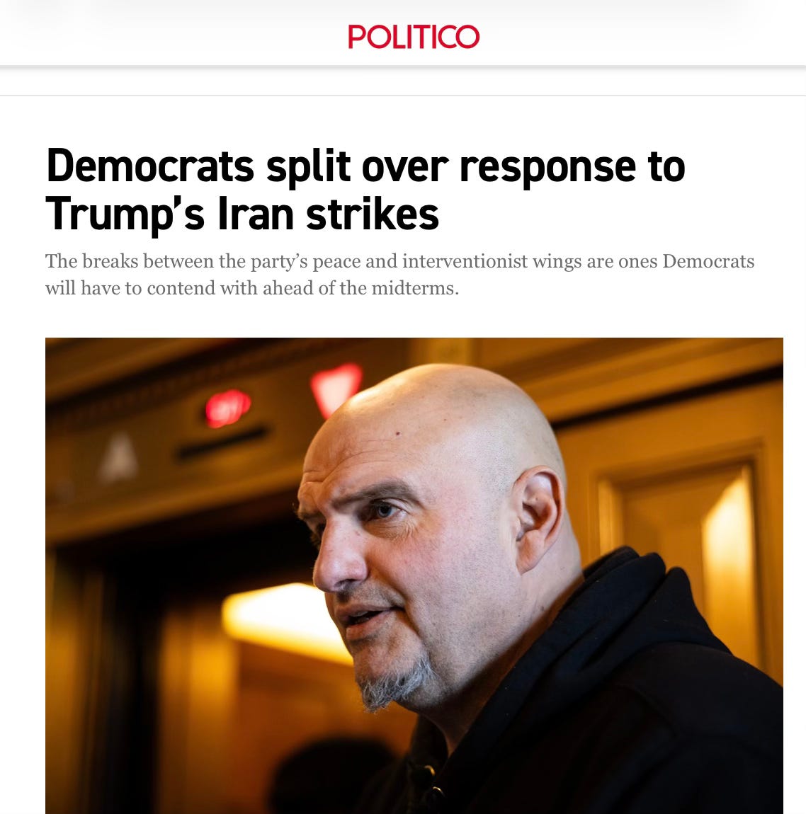 Politico tried to paint a more sane picture, as though there was an even split in the party between the sane and the insane. Yeah, no. It’s like Fetterman and one other guy. All of the major Democrats, like Kamala Harris and Elizabeth Warren, parroted the same message because they must and because the legacy media praises them for it and won’t do them the solid of shaking them out of it.