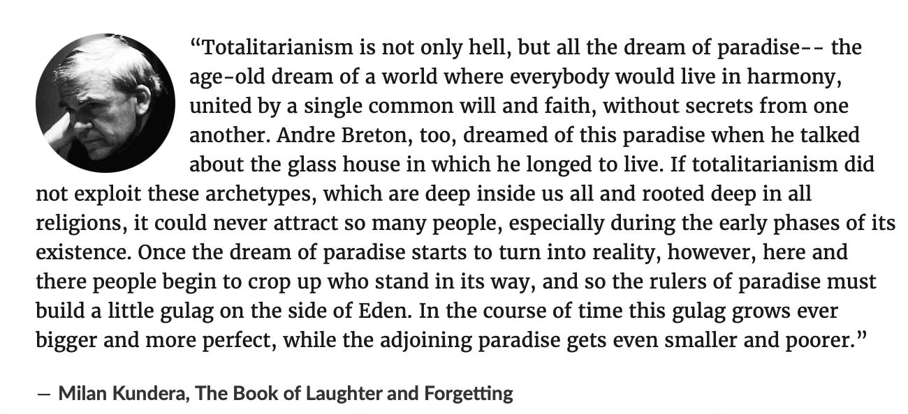 No one explained it better than Milan Kundera in the Book of Laughter and Forgetting, which I have cited often because it describes so perfectly what we’ve all just lived through: