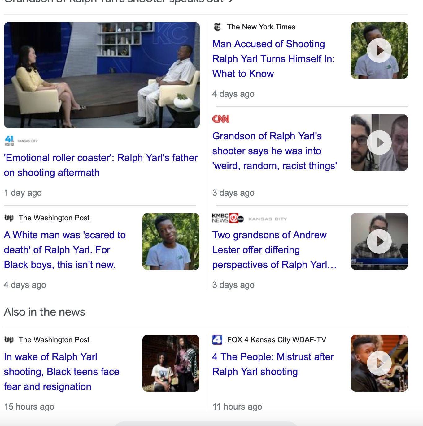On the same day Yarl was shot, April 13th, upwards of 30 people were also shot, and all of them were killed, many were young Black men shot by other Black men. Here is a list of some of the deaths, though most do not mention their race or their names, from Gun Violence: