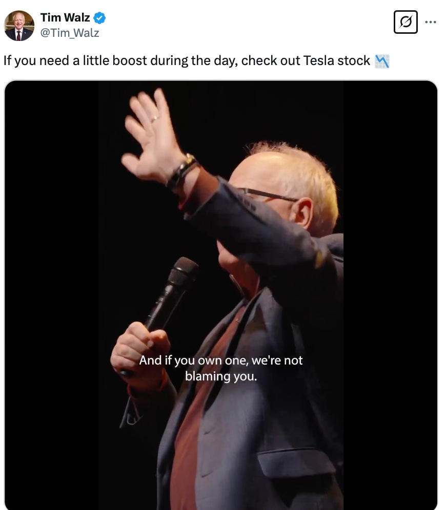 Here is failed Vice Presidential candidate Tim Walz doing the Hitler salute while trashing a company he could never build, much less come close to making profitable.