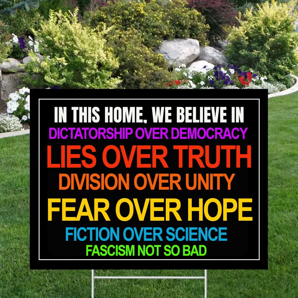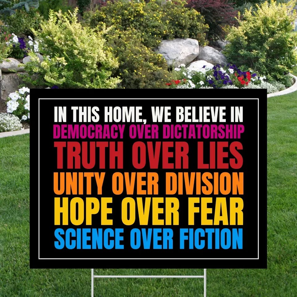 So let’s rewrite this lawn sign, shall we? In this home, we believe:
