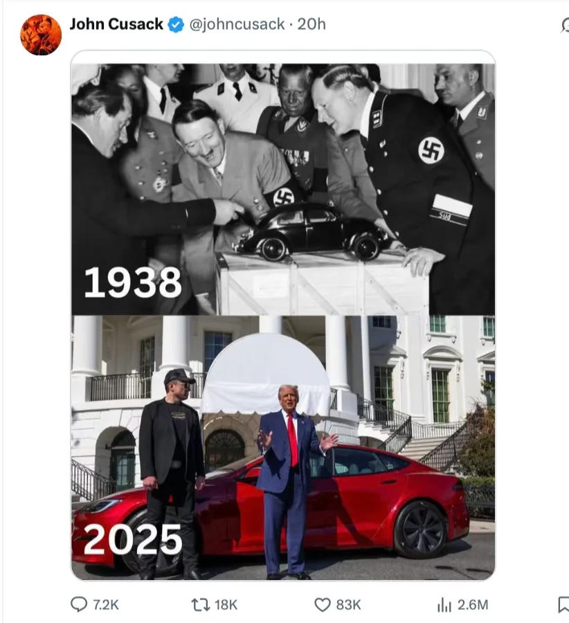 Now that they’ve decided to interpret Elon Musk’s wave to the crowd as a Nazi salute, they feel more than justified to rally as a movement and wage war on a successful car company that produces electric cars. They want every wealthy liberal who ever bought a Tesla to regret it, sell it, or use one of those embarrassing stickers that signal to the mob to skip their car. They’re one of the good guys.