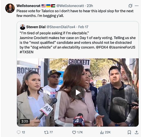 Talarico was already a shining star in the party before this. He just needed a boost. That he’s going along with this charade means he’ll play ball as the Democratic Establishment needs him to, and clearly has no interest in doing the right thing, being honest, or thinking for himself. Here he is, milking it for all its worth:
