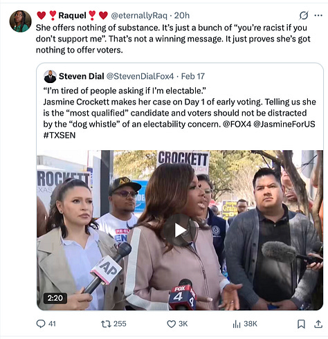 The truth: They need Jasmine Crockett out of the way if they want to flip Texas.