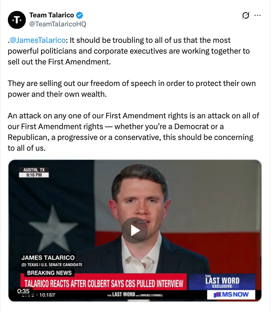 Early voting has already started in Texas for the Democratic Primary. We will find out the winner on March 3, but James Talarico just got a big boost from a manufactured controversy, courtesy of propagandist and wannabe political influencer Stephen Colbert.